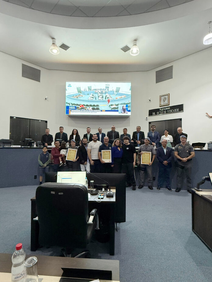 A iniciativa é de autoria do vereador Sargento Moreno e homenageia os policiais CB Gustavo Maciel Murari, CB Geisemara Sanches Marchioto e 3º SGT Kleber Troiane, pela dedicação, profissionalismo e impacto positivo deixado nas salas de aula e na vida de cada estudante.