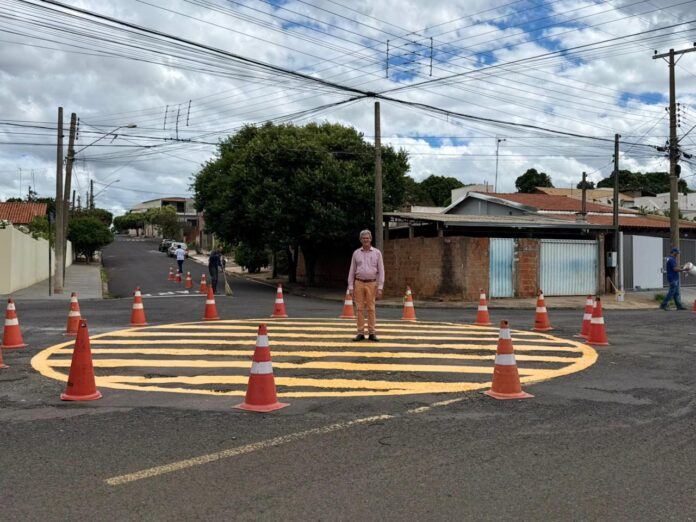 A Prefeitura de Votuporanga, por meio da Secretaria Municipal de Trânsito e Transportes, concluiu a implantação de uma rotatória no cruzamento da Avenida Anita Costa com as ruas Dos Lírios e Francisco Luiz Ferreira, no bairro São João. A melhoria foi realizada após indicação apresentada pelo vereador Gilmar Aurélio, o Gaspar.