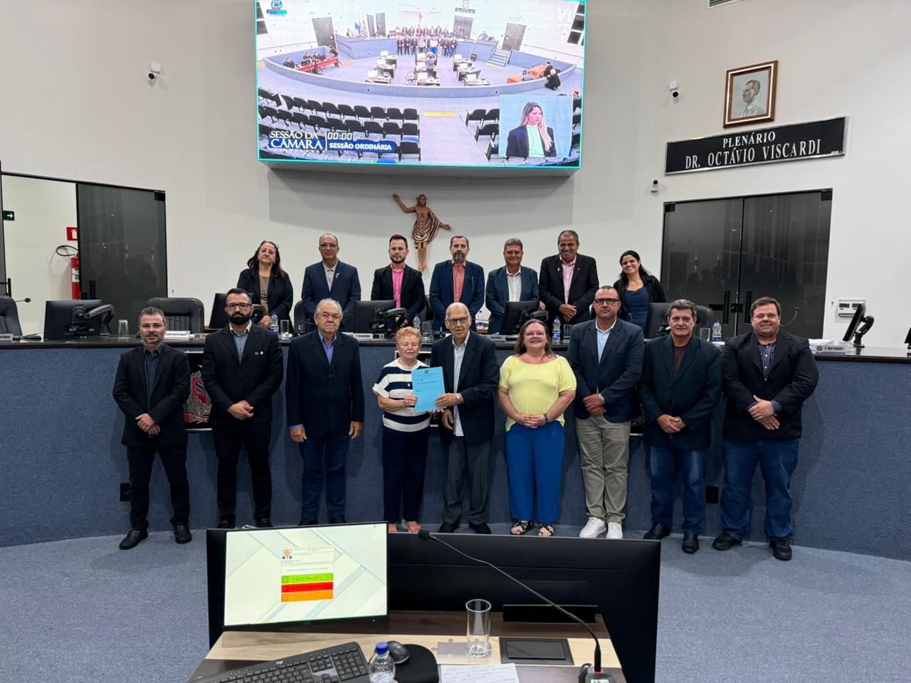 A votação foi acompanhada por familiares do homenageado, que estiveram presentes no plenário e receberam das mãos do vereador autor e dos demais vereadores uma cópia do projeto de lei aprovado, em um momento marcado por emoção e reconhecimento público à trajetória de vida de Ivo Gianezi.
